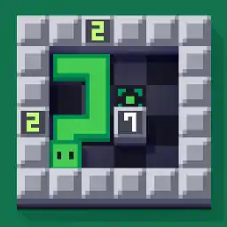 A combination of Snake and Minesweeper. Each number indicates the number of tiles occupied by the snake. Find a way to the goal!